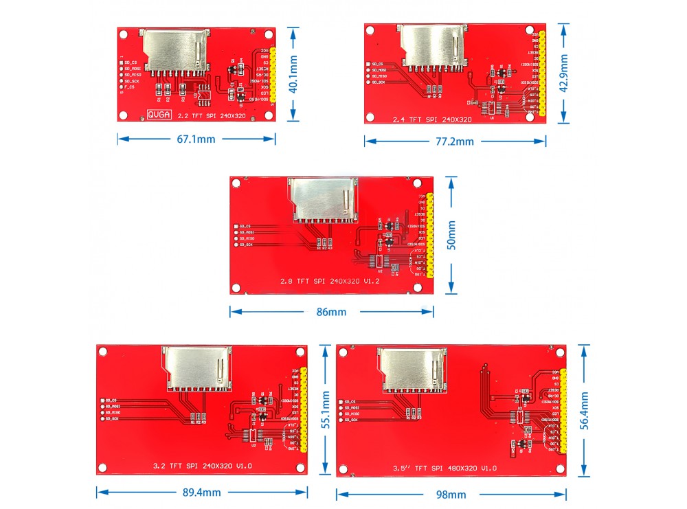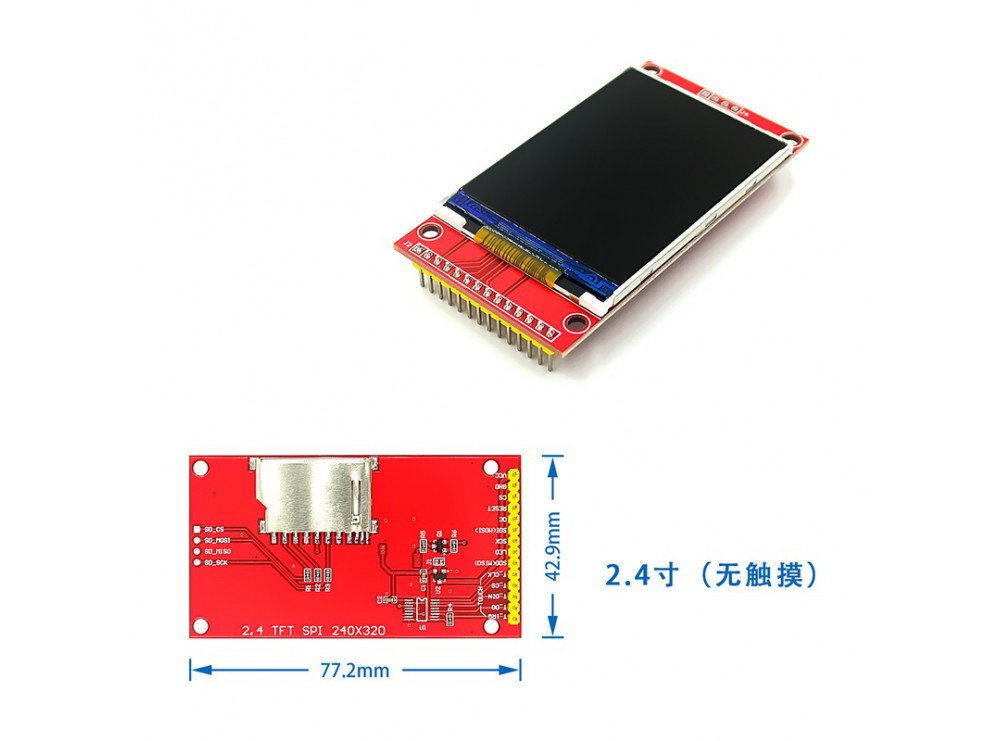 این ماژول یک نمایشگر TFT رنگی 2.4 اینچ با رزولوشن 240×320 پیکسل است که از کنترلر گرافیکی ILI9341 برای راهاندازی بهره میبرد. رابط ارتباطی آن بهصورت SPI چهار سیمه (MOSI, MISO, SCK, CS) طراحی شده که امکان اتصال آسان به انواع میکروکنترلرها مانند Arduino، STM32 و ESP32 را فراهم میکند. این برد علاوهبر نمایشگر، دارای اسلات کارت microSD برای ذخیرهسازی اطلاعات و تصاویررا فراهم میکند. همچنین وجود پین LED برای کنترل نور پسزمینه و پین RESET برای راهاندازی مجدد ماژول، از جمله مزایای طراحی آن بهشمار میرود. این ماژول بهدلیل ابعاد کوچک، مصرف کم و انعطاف در کاربرد، انتخابی ایدهآل برای پروژههای تعبیهشده و رابط کاربری گرافیکی ساده است.