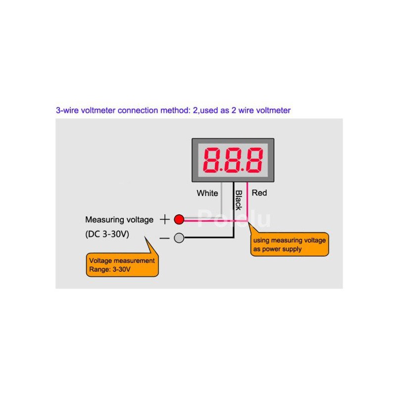 این ماژول ولتمتر دیجیتال سهسیمه، برای اندازهگیری ولتاژ مستقیم (DC) در بازهی 0 تا 36 ولت طراحی شده است. نمایشگر آن از نوع LED با سایز 0.36 اینچ و رنگ قرمز بوده و مقادیر ولتاژ را با دقت بالا و رزولیشن 0.1 ولت نمایش میدهد. طراحی این ماژول به گونهای است که از دو سیم برای تغذیه و یک سیم جداگانه برای اندازهگیری ولتاژ استفاده میکند. همچنین در صورت نیاز میتوان از آن بهصورت دو سیمه استفاده کرد، که در این حالت تغذیه و اندازهگیری از یک منبع مشترک انجام میگیرد. یکی از ویژگیهای قابل توجه این ماژول، برخورداری از حفاظت داخلی در برابر اشتباه در اتصال قطب مثبت و منفی تغذیه است که از آسیب به مدار جلوگیری میکند. سرعت نمونهبرداری بالای ماژول (200 میلیثانیه) امکان نمایش تقریباً بلادرنگ مقادیر ولتاژ را فراهم میسازد. این ماژول بهدلیل ابعاد کوچک و مصرف پایین، گزینهای مناسب برای کاربردهای قابلحمل، منابع تغذیه آزمایشگاهی و پروژههای DIY الکترونیکی به شمار میرود.
