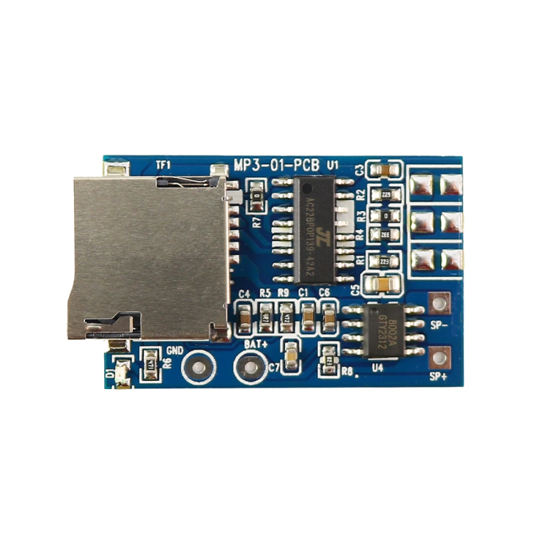 این ماژول یک پخشکنندهی کامل MP3 با امکاناتی نظیر پخش مستقیم از کارت حافظه microSD، فلش مموری (U-disk)، رادیو FM و ورودی صوتی LineIn است. عملکرد این برد بهصورت مستقل بوده و برای پخش فایلها نیازی به میکروکنترلر خارجی ندارد. همچنین دارای آمپلیفایر داخلی 2 وات است که با تغذیه 5 ولت توان خروجی تا 3 وات را برای اسپیکرهای 4 اهمی فراهم میکند. قابلیتهایی نظیر تشخیص خودکار هدفون، پخش منابع صوتی خارجی، و ذخیرهی تنظیمات در حافظه خارجی، عملکردی حرفهای برای پروژههای صوتی فراهم میسازد. این ماژول فاقد پشتیبانی از کنترل از راه دور IR و حالت USB Device است، اما از گیرندههای رادیویی FM رایج پشتیبانی میکند. طراحی ساده و فشردهی آن، بدون نیاز به قطعات جانبی، راهاندازی سریع را امکانپذیر میسازد.