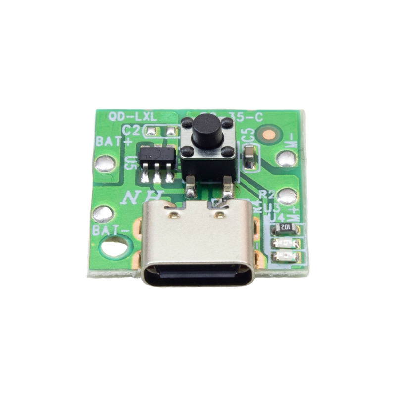 این برد کنترلی کوچک، مخصوص راهاندازی فنهای دستی قابل شارژ طراحی شده است و قابلیت کنترل یک موتور براش 3.7 ولتی را در سه سرعت مختلف فراهم میسازد. تغذیه اصلی برد از یک باتری لیتیومیونی تک سل تأمین میشود (BAT+ و BAT-)، و عملیات شارژ از طریق درگاه USB Type-C با جریان حدود 500 میلیآمپر انجام میشود.برد دارای یک کلید فشاری مرکزی است که با هر بار فشردن، سرعت موتور را در سه سطح تغییر داده و در مرحله چهارم، آن را خاموش میکند.