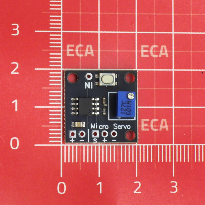 با فشردن و نگهداشتن دکمه، سروو به زاویه تنظیمشده میچرخد و با رها کردن آن به موقعیت صفر بازمیگردد.