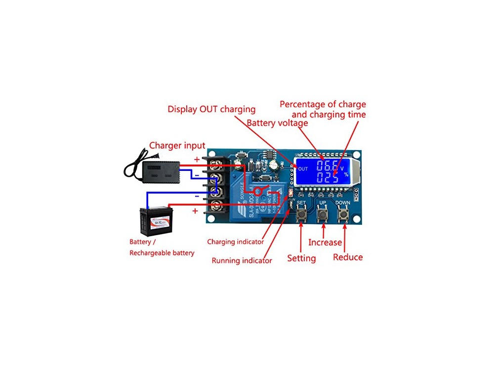 ماژول کنترل شارژ باتری دیجیتال مدل XY-L30A ابزاری برای مدیریت فرآیند شارژ باتریهای مختلف از جمله باتریهای سرب اسیدی است. این ماژول در محدوده ولتاژی 6 تا 60 ولت کار میکند و با داشتن نمایشگر LCD، اطلاعاتی همچون ولتاژ فعلی، درصد شارژ باتری و زمان سپریشده برای شارژ را بهصورت همزمان نمایش میدهد. یکی از ویژگیهای اصلی این ماژول، قابلیت کنترل خودکار شارژ است؛ با تنظیم محدوده ولتاژ بالا و پایین، زمانی که ولتاژ باتری به حد پایین برسد، رله فعال شده و فرآیند شارژ آغاز میشود، و به محض رسیدن به ولتاژ بالا، رله قطع شده و شارژ بهصورت خودکار متوقف میگردد.