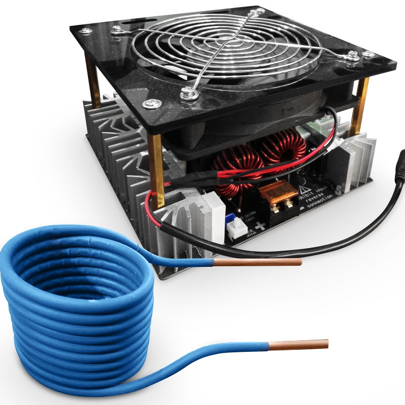 This induction heating circuit uses 12-54V low-voltage DC power supply , the maximum current is 60A, and the maximum power is 3000W. It can work continuously under the condition of good heat dissipation. Because of its moderate power, it can be used for DIY play It can be used for quenching, annealing and other heat treatment for small parts, and can also be used with graphite crucibles to smelt gold, silver, copper, aluminum and other metals, and the heating is uniform and fast, which is very convenient.