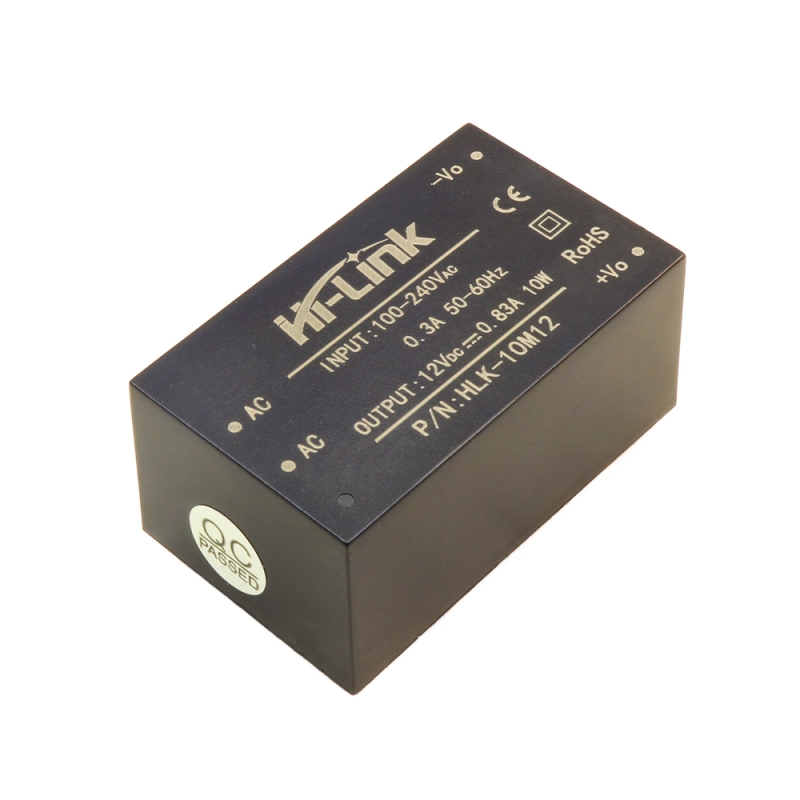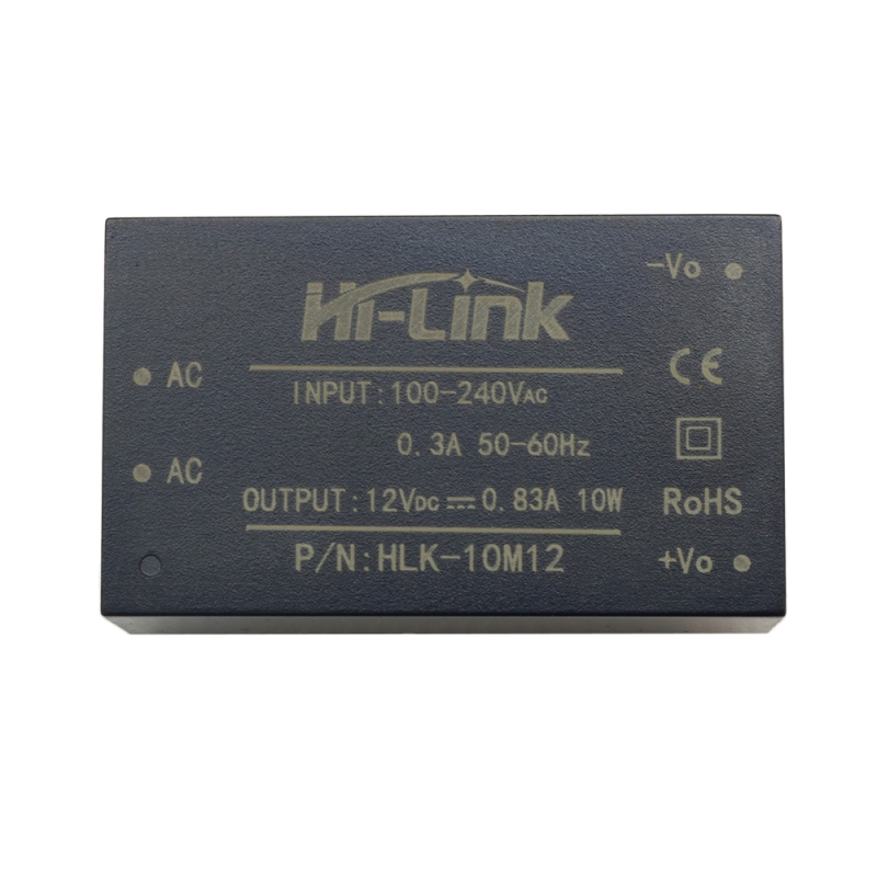 ماژول منبع تغذیه HLK-10M12 از برند HI-LINK یک ماژول ایزوله سوئیچینگ است که قابلیت تامین ولتاژ خروجی 12 ولت DC از ولتاژ ورودی 100 تا 240 ولت AC را دارد. توان خروجی این ماژول 10 وات بوده و طراحی فوقالعاده جمعوجور آن، این ماژول را به گزینهای مناسب برای کاربردهایی که محدودیت فضا دارند، تبدیل کرده است. این ماژول روبردی، با قاب پلاستیکی طراحی شده و جایگزین بسیاری از قطعات منبع تغذیه سنتی نظیر دیود، رگولاتور ولتاژ و ترانسفورماتور شده است.