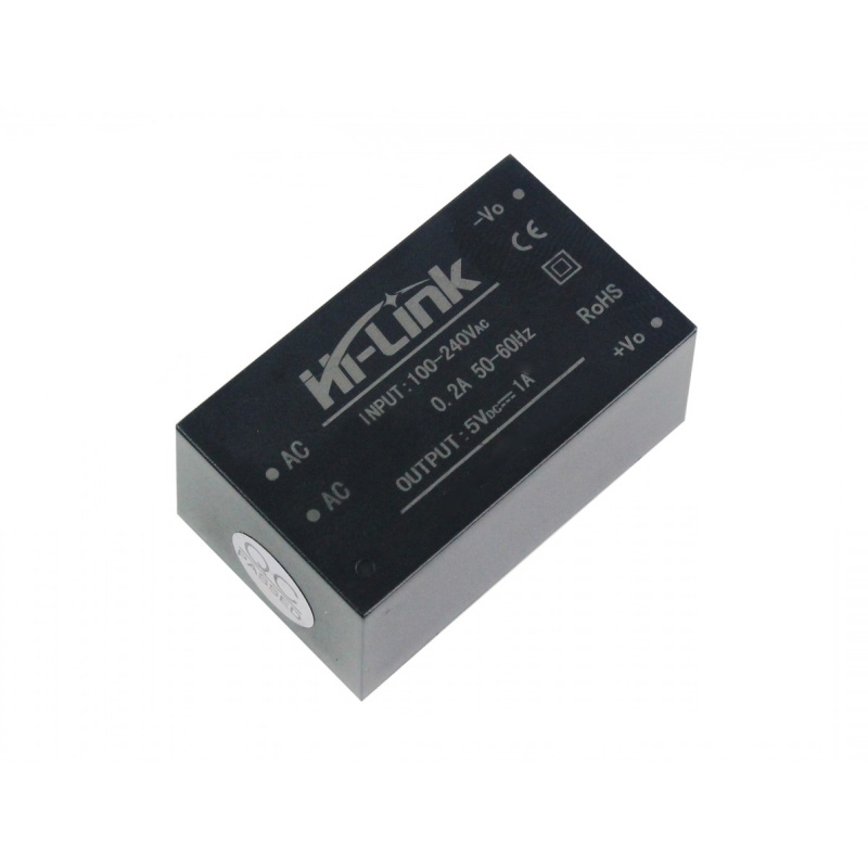 HLK-5M05 5V/3W Switch Power Supply Module is plastic enclosed PCB mounted isolated switching step-down power supply module. It can supply 5V DC from 120V AC – 230V AC and has a power rating of 5 Watt. This makes it perfect for small projects that need a 5 volt supply from mains. This power supply module replaces lots of parts from the traditional power supply like diodes, voltage regulator and transformers. Therefore there are many advantages for these modules, such as low-temperature rise, low power, high efficiency, high reliability, high-security isolation etc.