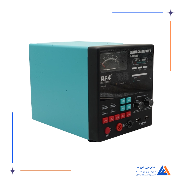 منبع تغذیه RF4 RF-3005 PRO با ولتاژ ورودی 220 ولت و فرکانس 50/60 هرتز طراحی شده و دارای محدوده ولتاژی از 0 تا 30 ولت و توان 150 وات می باشد. جریان خروجی در حالت عادی 5 آمپر است، اما با استفاده از قابلیت شورت کیلر تا 8 آمپر نیز قابل دستیابی است. این دستگاه از قابلیت نمایش توان و دقت نمایش جریان تا 3 رقم اعشار برخوردار است. همچنین دارای 4 کانال ذخیره برای پارامترها، قفل صفحه و دو خروجی USB با ولتاژ 5 ولت و جریان 2 آمپر مخصوص شارژ می باشد. وجود کلید قطع خروجی برای ولتاژ و جریان از ویژگی های مهم ایمنی دستگاه است.