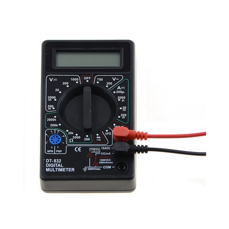 مولتی متر دیجیتالی DT-830/832D یک مولتی متر دیجیتال جیبی ساده با قابلیت اندازه گیری رنج وسیعی از کمیت های الکتریکی می باشد و یکی از پر مصرف ترین و ارزان ترین دستگاه های این حوزه است.