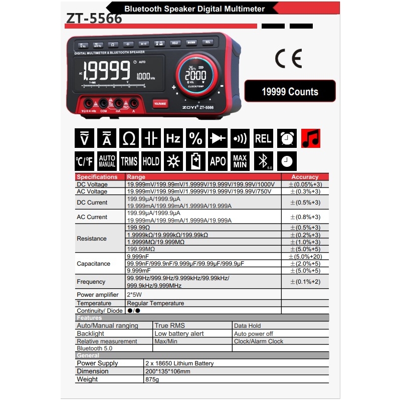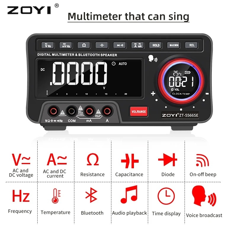 مولتی متر حرفه ای و پیشرفته رومیزی ZOYI مدل ZT-5566 دارای اسپیکر و بلوتوث