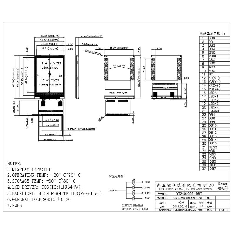 نمایشگر TFT رنگی 2.4 اینچ با تاچ دارای رزولوشن 240 در 320 پیکسل مدل YT240L002 مناسب برای کاربردهای صنعتی و غیر صنعتی. قابل راه اندازی با انواع میکروکنترلر ها
