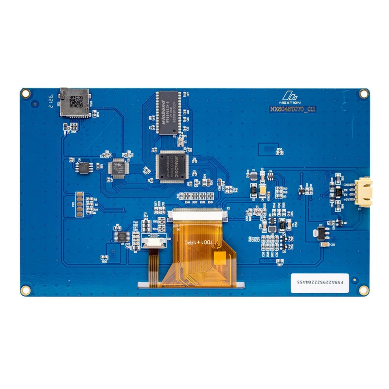 صفحه نمایش NX8048T070 یکی از نمایشگر قدرتمند از خانواده Nextion است. این نمایشگر در ابعاد 7 اینچی و از نوع TFT بوده که حافظه فلش 16 مگابایتی و رم 3.5 کیلوبایتی دارد و از 65 هزار رنگ پشتیبانی میکند Nextion شامل یک بخش سخت افزاری (یک سری از بردهای TFT) و یک بخش نرم افزاری (ویرایشگر theNextion) است. برد Nextion TFT تنها از یک پورت سریال برای برقراری ارتباط استفاده می کند. ویرایشگر Nextion دارای اجزای انبوهی مانند دکمه، متن، نوار پیشرفت، نوار لغزنده، پنل ابزار و … برای غنی سازی طراحی رابط است و عملکرد کشیدن و رها کردن تضمین می کند که کاربران زمان کمتری را در برنامه نویسی صرف می کنند. با کمک این ویرایشگر WYSIWYG، طراحی یک رابط کاربری گرافیکی بسیار راحت است.
