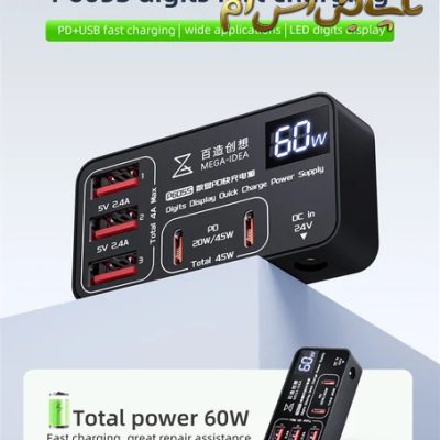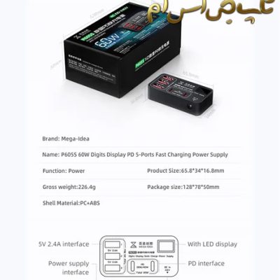 یک شارژر 60W با 5 پورت خروجی و نمایشگر قدرت شارژ_x000D_