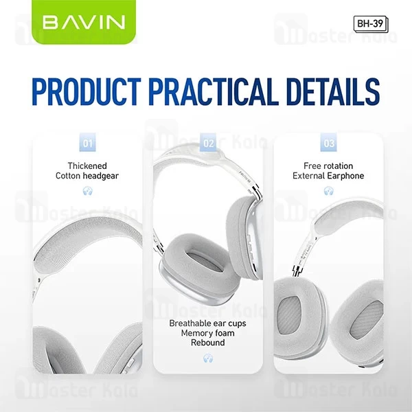 هدفون BH-39 محصولی شکیل است که در طراحی آن زیبایی و جذابیت رعایت شده است. در قسمت بالایی که روی سر قرار میگیرد و همچنین گوشی های هدفون BH-39 از بالشتک های راحت استفاده شده که برای استفاده طولانی مدت مناسب باشد. قسمت گوشی های هدفون دارای حالت چرخشی می باشد.بر روی گوشی سمت چپ و راست هدفون بلوتوثی باوین BH-39 چند دکمه برای کنترل صدا و موزیک، کنترل تماس، خاموش/روشن کردن وجود دارد.