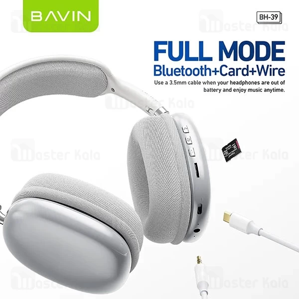علاوه بر این شما میتوانید به کمک درگاه جک 3.5 قرار گرفته روی هدفون بلوتوثی Bavin BH-39، هدفون خود را به صورت باسیم نیز به انواع دستگاههای متصل کرده و از آن استفاده کنید.