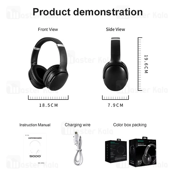 ابعاد و وزن هدفون رم خور سودو 1011 برابر 18.5*7.9*19.6 سانتی متر و 287 گرم میباشد. بر روی گوشی سمت چپ هدست Sodo SD-1011 چند دکمه برای کنترل صدا و موزیک، کنترل تماس، خاموش/روشن کردن دستگاه و خاموش و روشن کردن حالت اکولایزر وجود دارد.