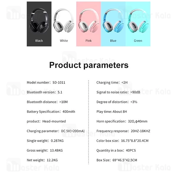 هدفون بی سیم سودو مدل SD-1011 دارای درایور 40 میلی متری است. شما به کمک هدفون سودو SD-1011 میتوانید صدای استریو HD HiFi با کیفیت بالایی را تجربه نمایید.