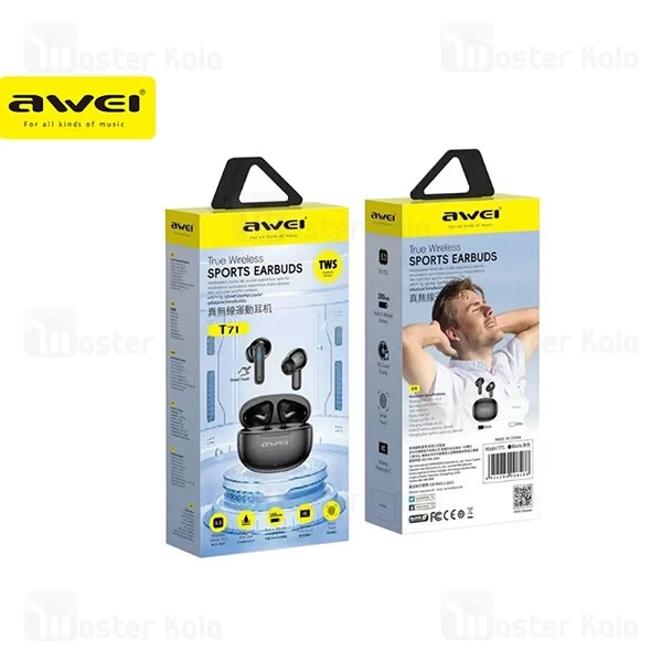 هندزفری Awei T71 با بلوتوث نسخه 5.3 و شارژدهی 7 ساعته گوشی ها با هر بار شارژ انتخاب خوبی برای استفاده روزمره است.