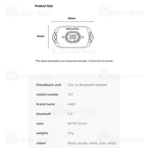 ویژگیهای فنی هندزفری بلوتوثی اوی TZ7