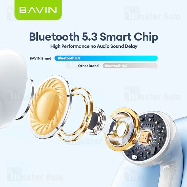 هندزفری Bavin Airpod 81 از جدیدترین نسخه بلوتوث یعنی نسخه 5.3 بهره میبرد که با استفاده از چیپ هوشمند، انتقال صدا را بدون تأخیر و با کیفیت بالا انجام میدهد. این نسخه از بلوتوث باعث میشود اتصال سریعتر، پایدارتر و با مصرف باتری کمتر برقرار شود. همچنین، امکان جابجایی آزادانه تا فاصله 10 متری بدون مانع نیز برای کاربر فراهم شده است. اگر بهدنبال هندزفریای هستید که در حین تماشای فیلم یا بازی آنلاین صدایی همزمان با تصویر داشته باشد، این ویژگی در هندزفری بلوتوث باوین Airpod 81 مهمترین مزیت آن خواهد بود.
