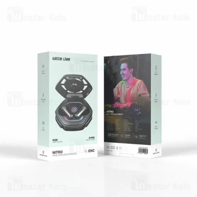 هندزفری Green Lion Nitro دارای یک کیس شارژ بسیار جذاب است. بدنه این کیس شارژ از ABS ساخته شده است. همچنین طرح کیس این هندزفری حالت شش ضلعی داشته که به آن جذابیت خاصی میبخشد.درون کیس از نورپردازی RGB استفاده شده که زیبایی آن را دو چندان کرده است.