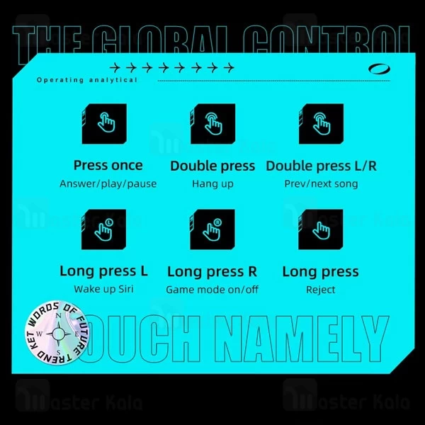 روی گوشیهای هندزفری یوسامز IA04 یک پنل لمسی قرار گرفته است. استفاده از این پنل لمسی کمک میکند بتوانید از هندزفری خود بهتر استفاده کنید. کارکرد پنلها به شرح زیر است: