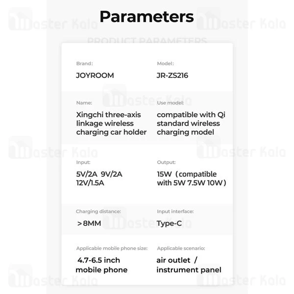 هولدر و شارژر وایرلس جویروم Joyroom JR-ZS216 Three-axis Electric Wireless Charger توان 15 وات