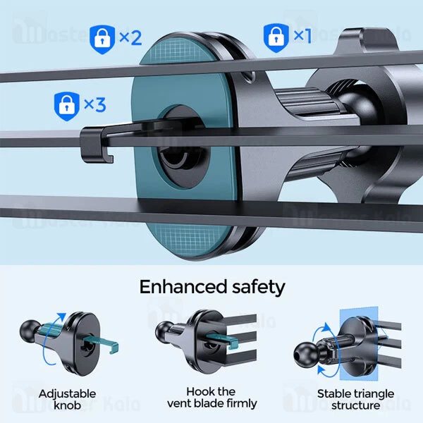 هولدر و شارژر وایرلس Joyroom JR-ZS243 توسط گیره ای که داشته به راحتی بر روی دریچه کولر نصب می شود و سپس می توان تلفن همراه را روی آن قرار داد. مراحل نصب و راه اندازی آن ساده می باشد و قرار دادن آن روی دریچه کولر با گیره قابل تنظیم به راحتی قابل انجام است. بعد از نصب، به خوبی گوشی را نگه می دارد و شما می توانید به راحتی با گوشی خود کار کنید. برای نگه داشتن گوشی یک بازو در دو طرف این هولدر تعبیه شده است. یک دکمه در سمت راست در پایین تر از این بازو وجود دارد که با فشوردن آن بازو ها باز شده و می توانید گوشی خود را داخل هولدر قرار دهید و سپس بازو ها را با دست بسته و چفت کنید؛ این بازو ها باعث می شوند گوشی از هولدر جدا نشده و تکان نخورد. باز و بسته شدن این بازو خیلی راحت بوده و به آسانی صورت خواهد گرفت.