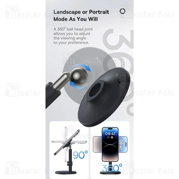 هولدر و پایه نگهدارنده رومیزی بیسوس BS-HP014 MagPro قابلیت تنظیم ارتفاع داشته و ارتفاع پایه آن در کمترین حالت 165میلی متر بوده و در بیشترین حالت 197 میلی متر خواهد بود.همچنین شما می توانید قسمت نگهدارنده را 90 درجه به بالا و پایین تنظیم کنید. همچنین میتوانید گوشی خود را در زاویه 360 درجه بچرخانید.
