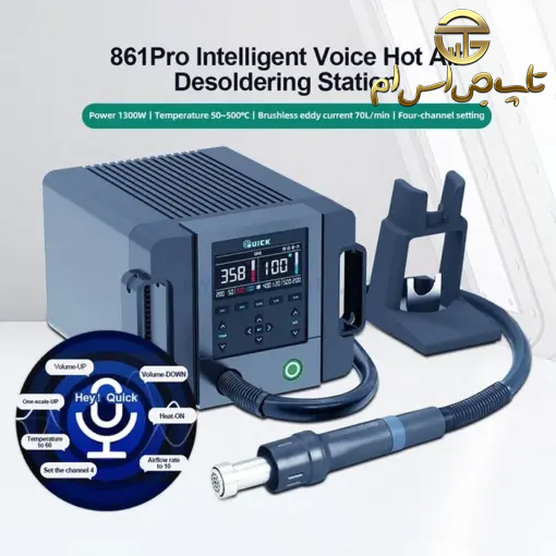 هیتر QUICK 861 PRO محدوده دما بین 50-550 درجه سانتیگراد ، دارای دمای خطی PID هوشمند ، قابلیت نمایش سینوسی دما ، حجم هوا 70 لیتر در دقیقه (دقیقا مانند TR1300 ) ، محدوده تنظیم حجم هوا : سطح 1-200 و دارای ولتاژ ورودی 110-220 ولت میباشد.
