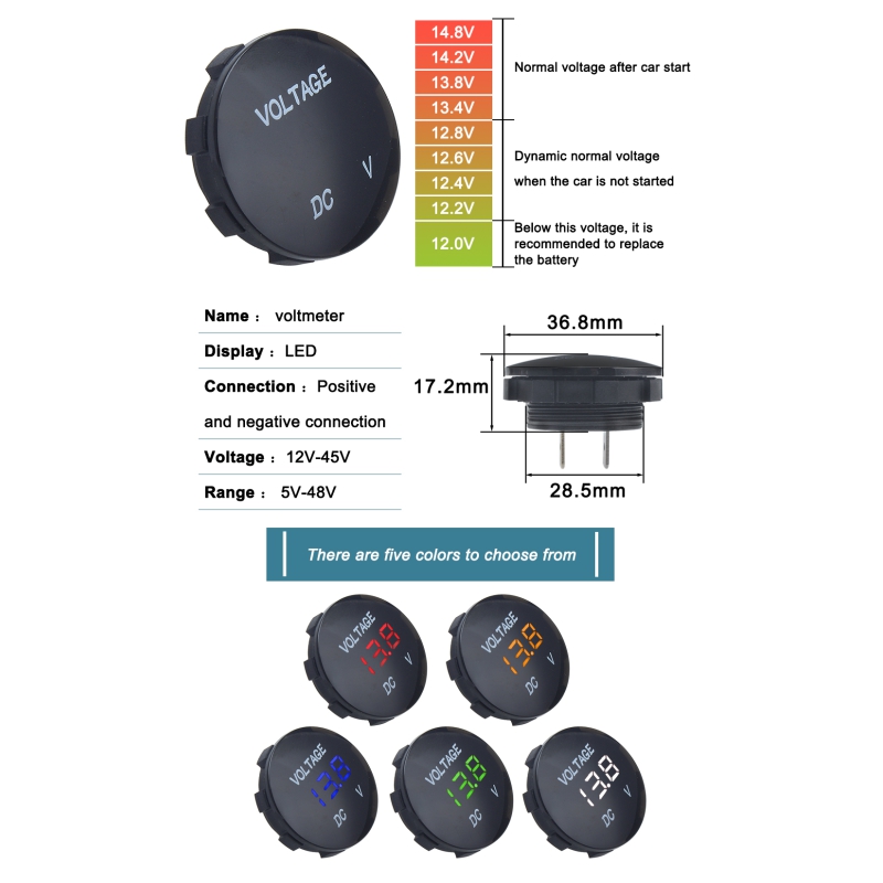 ولتمتر خودرویی روپنلی DC قرمز گرد