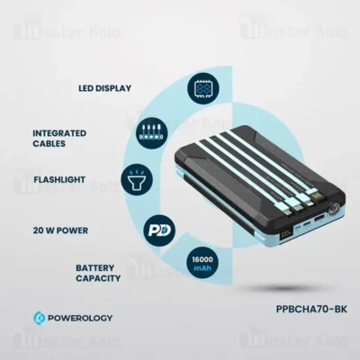 پاوربانک خورشیدی 16000 پاورولوژی Powerology PP070 Multi-Cable Power Bank PPBCHA70 با کابل متصل