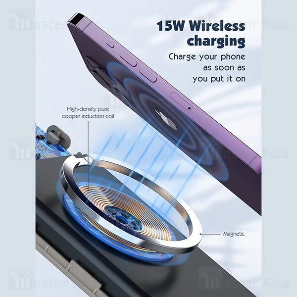 حالت دیگر شارژ این پاوربانک، حالت وایرلس و مگنتی است. که دستگاه شما روی قسمت وایرلس قرار گرفته و شارژ خواهد شد.