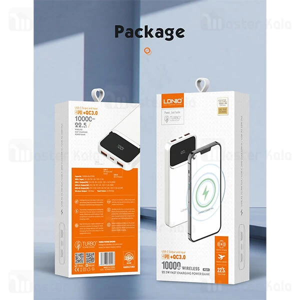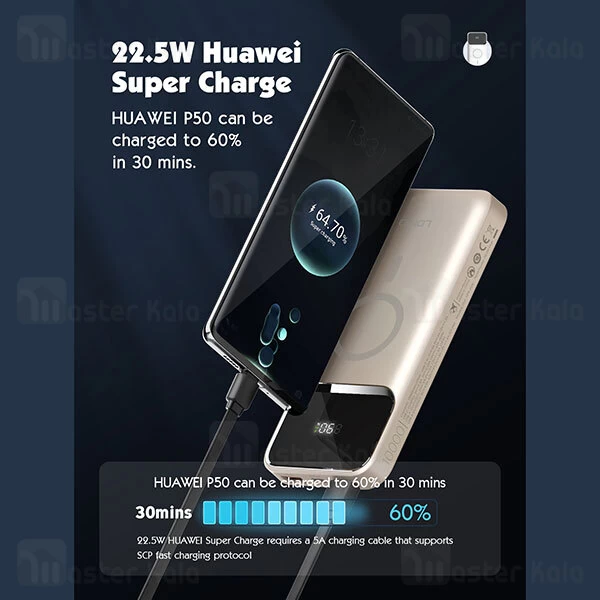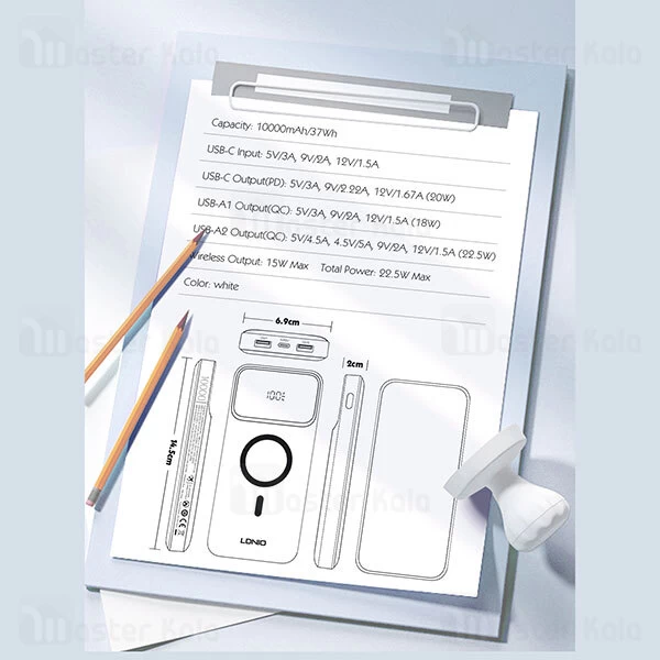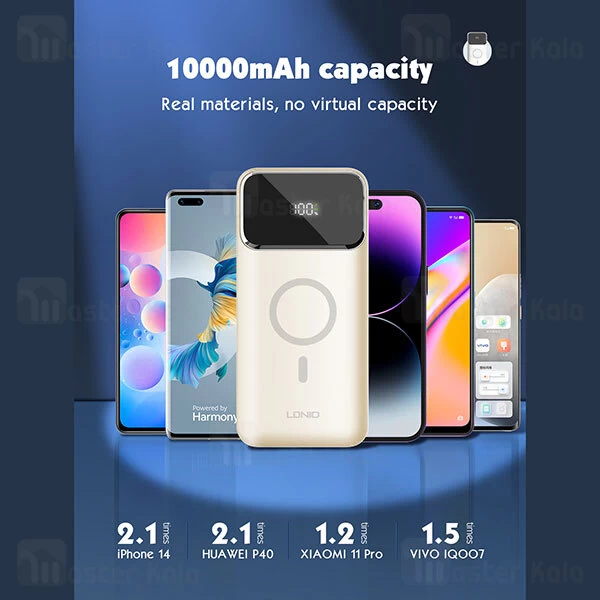 پاوربانک وایرلس 10000 مگنتی الدینیو LDNIO PQ12 توان 22.5 وات