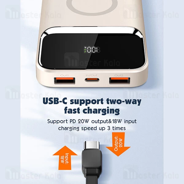 بر روی پاوربانک وایرلس مگنتی الدینیو PQ12 دو درگاه ورودی و سه درگاه خروجی قرار داشته که درگاه های ورودی برای شارژ پاوربانک بوده و درگاه خروجی نیز برای شارژ دستگاه ها مورده استفاده قرار خواهد گرفت. درگاه های ورودی این پاور بانک از نوع تایپ سی و درگاه های خروجی شامل دو درگاه تایپ سی و 2 درگاه USB می باشد؛ یکی از درگاه های تایپ سی از قابلیت PD20W پشتیبانی می کند که می توانید با آن دستگاه های خود را با سرعت بالا شارژ کنید. این درگاه مشترک بوده، به این معنی که هم قابلیت ورودی و هم قابلیت خروجی خواهد داشت. بعلاوه درگاه USB نیز قابلیت شارژ سریع را دارا می باشد.یکی دیگر از ویژگی های خوب این پاوربانک این است که شما می توانید در هواپیما هم از این پاوربانک نیز استفاده کنید.