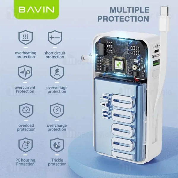 پاوربانک باوین Bavin PC018S به گونه ای طراحی شده که از تجهیزات در حال شارژ در برابر شارژ، جریان ،ولتاژ و دمای بیش از حد و همچنین اتصال کوتاه حفاظت می کند.