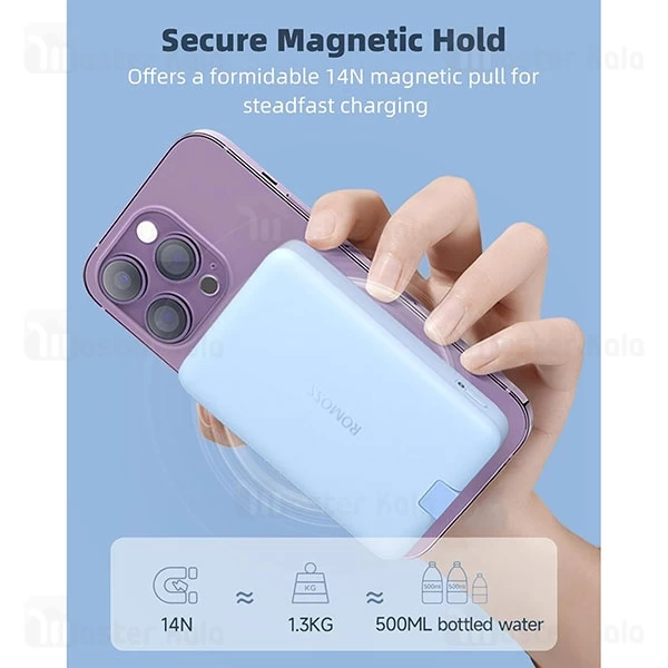 پاوربانک مگ سیف روموس مدل 10-121 با بهرهگیری از سیستم اتصال مغناطیسی قدرتمند، بهراحتی به پشت گوشیهای سازگار با MagSafe میچسبد و تجربهای بیسیم و بیدردسر از شارژ را فراهم میکند. این سیستم با استفاده از 14 آهنربای قوی، اتصال پایداری ایجاد میکند که حتی در حین حرکت نیز از جدا شدن جلوگیری میکند. دیگر نیازی به کابلهای درهمپیچیده نیست؛ فقط کافیست پاوربانک را به گوشی متصل کنید تا فرایند شارژ آغاز شود. این ویژگی بهخصوص برای آیفونهای سری 12، 13 و 14 کاربردی و مؤثر است.