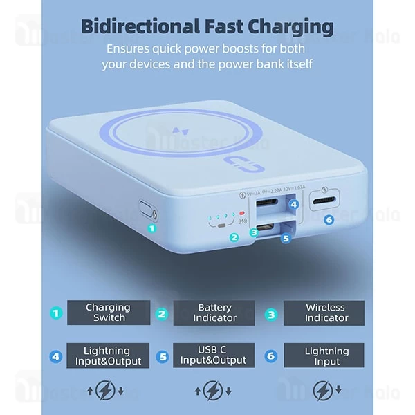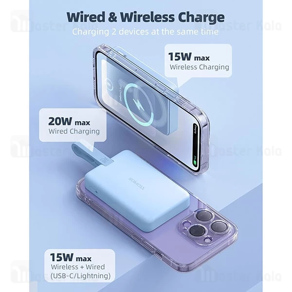 پاوربانک مگ سیف روموس مدل 10-121 با پشتیبانی از دو حالت شارژ—یکی با کابل (تا توان 20 وات از طریق پورت USB-C) و دیگری بهصورت بیسیم (تا 15 وات)—امکان شارژ همزمان دو دستگاه را فراهم میکند. با وجود این قابلیت، میتوانید هم گوشی خود را شارژ کنید و هم گوشی دوستتان یا یک دستگاه دیگر را، بدون نیاز به چند پاوربانک. شارژ سریع باعث میشود تا زمان کمتری برای شارژ صرف شود و همیشه در لحظههای مهم، انرژی کافی داشته باشید.