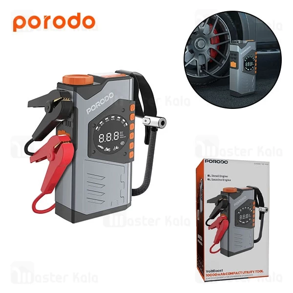 پاوربانک 10000 و کمپرسور باد و جامپ استارتر خودرو پرودو Porodo PDPBA10GY