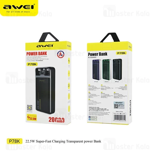 پاوربانک Awei P78K یکی از محصولات قدرتمند و کارآمد برند معتبر Awei است که با ظرفیت بالا و ویژگیهای منحصربهفرد خود، به انتخابی مناسب برای کاربران فعال در سفرها، فعالیتهای روزمره و استفادههای طولانیمدت تبدیل شده است. این محصول با ظرفیت 20000 میلیآمپر ساعت طراحی شده و قابلیت شارژ چندباره انواع گوشیهای هوشمند، تبلتها و دستگاههای دیگر را فراهم میکند. طراحی زیبا، امکانات پیشرفته، و ایمنی بالا، از جمله عواملی هستند که این پاوربانک را متمایز میسازند. در ادامه به معرفی ویژگیهای مهم این محصول و توضیح هریک میپردازیم.