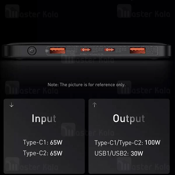 پاوربانک فست شارژ بیسوس PPBLD100-X Blade دارای چهار پورت خروجی است که دو پورت آن USB بوده و دو پورت دیگر Type C می باشد. هر دو پورت تایپ سی در این پاوربانک، قابلیت ورودی و خروجی را دارا می باشد. یعنی هم پاوربانک با این درگاه ها شارژ شده و هم می توانید با استفاده از این درگاه دستگاه های خود را شارژ کنید. توان ورودی هر دو پورت درگاه تایپ سی 65 وات بوده و توان خروجی آن ها 100 وات می باشد. بعلاوه توان خروجی پورت های USB پاوربانک Baseus PPBLD100-X Blade برابر با 30 وات خواهد بود. قابل ذکر است برای استفاده از این توان ها باید دستگاه شما از این توان پشتیبانی کند. توجه داشته باشید که اگر چند دستگاه را همزمان به این پاوربانک متصل کنید، شدت خروجیهای اشاره شده، میان آنها تقسیم خواهد شد.