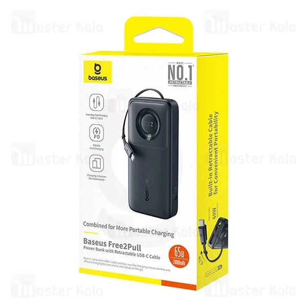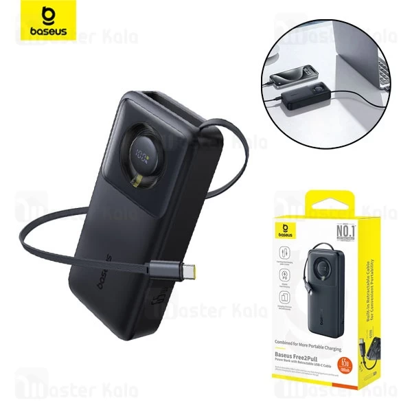 پاوربانک 20000 بیسوس Baseus Free2Pull P10073700123 توان 65 وات با کابل تایپ سی جمع شونده