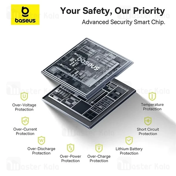 پاوربانک Baseus QPow 2 مجهز به یک تراشه هوشمند پیشرفته است که حفاظت کاملی را برای دستگاههای شما فراهم میکند. این تراشه از دستگاهها در برابر ولتاژ بیشازحد، تخلیه بیشازحد، دمای بالا و دیگر خطرات احتمالی محافظت میکند و تضمین میکند که شارژ دستگاهها به ایمنترین شکل ممکن انجام شود.