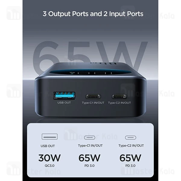 این پاوربانک با توان خروجی 65 وات قابلیت شارژ فوقسریع انواع دستگاهها از جمله لپتاپ، تبلت و موبایل را فراهم میکند. بهطور متوسط، شارژ دستگاهها تا شش برابر سریعتر از پاوربانکهای معمولی انجام میشود. بنابراین اگر وقت محدودی برای شارژ دارید یا دائماً در رفتوآمد هستید، این قابلیت برای شما بسیار مفید است. شارژ لپتاپهایی مانند مکبوک یا گوشیهای پرچمدار سامسونگ و شیائومی تنها در مدت کوتاهی انجام میشود.