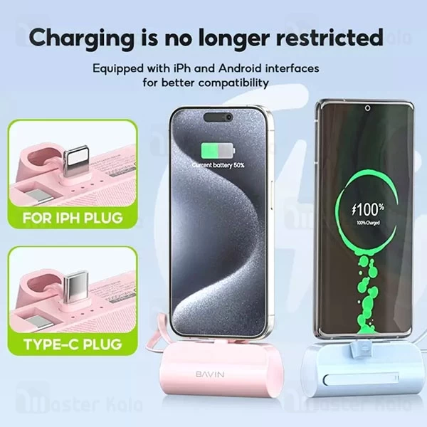 پاوربانک 5000 باوین Bavin PC012 Pro توان 12 وات همراه با کانکتور تایپ سی