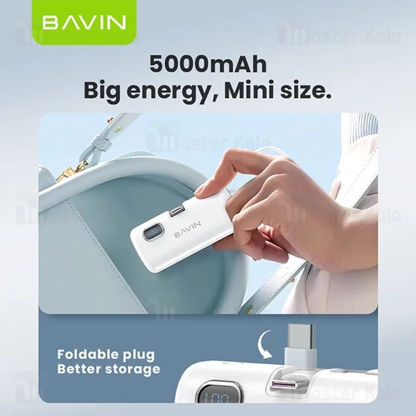 یکی از ویژگیهای برجسته پاوربانک Bavin PC1092s، طراحی بسیار کوچک و سبک آن است که علاوه بر کابل لایتنینگ و درگاه تایپ سی، یک کانکتور تایپ سی تاشو نیز برای آن در نظر گرفته شده است. ابعاد این پاوربانک بسیار جمع و جور است که حمل آن را بسیار آسان کرده و به راحتی در جیب یا کیف جای میگیرد. علاوه بر این، پاوربانک پنج هزار Bavin PC1092s در رنگهای جذاب آبی، سفید، مشکی و بنفش عرضه میشود که باعث میشود بتوانید رنگ دلخواه خود را انتخاب کنید و از طراحی زیبا و مدرن آن لذت ببرید.