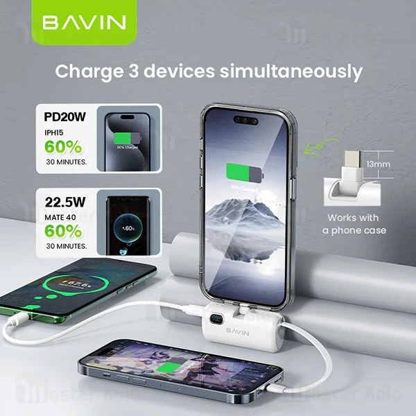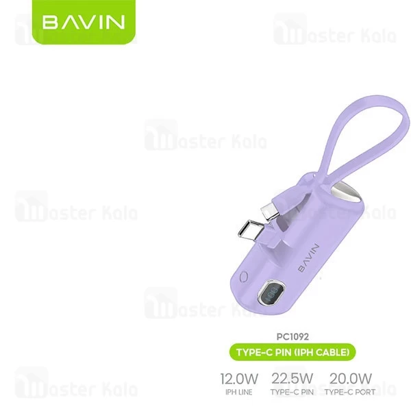 پاوربانک 5000 باوین Bavin PC1092s توان 22.5 وات همراه با کانکتور تایپ سی
