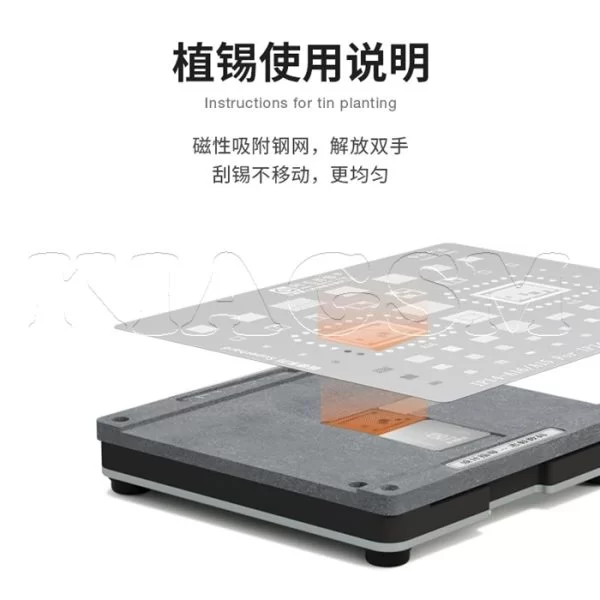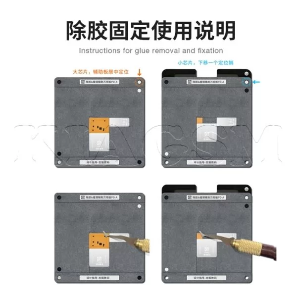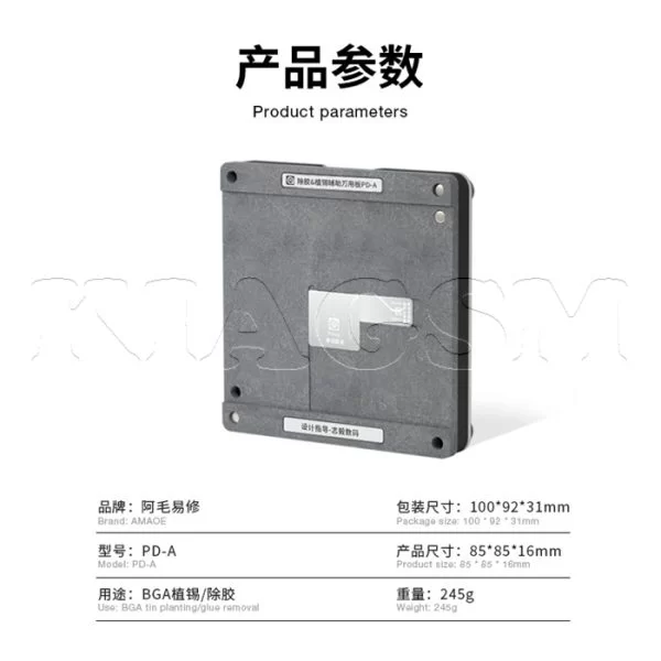 پد مگنتی شابلون آیسی برند AMAOE PD-A با مگنت قوی مناسب برای تمیز کردن چسب، پایه سازی انواع آیسی ها و طبقات مادربرد به همراه یک عدد تیغ تمیز کردن آیسی