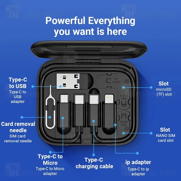 باکس چند منظوره Biva C-18 وزنی حدود 52 گرم دارد که به راحتی میتوانید آن را حمل و نقل کنید. جنس این محصول از پلاستیک محکم ABS و PC بوده است. داخل باکس چند منظوره Biva C-18 یک کابل تایپ سی به تایپ سی با طول 30 سانتی متر، یک تبدیل لایتنینگ (آیفونی)، یک تبدیل USB، یک تبدیل میکرو (Micro USB) و یک سوزن سیم کارت وجود دارد. قابل ذکر است تبدیل ها به کانکتور تایپ سی متصل خواهند شد. شما با استفاده از این تبدیل ها و کابل می توانید تمام دستگاه های موجود را به سیستم و یا آداپتور خود متصل کرده و به انتقال اطلاعات و یا شارژ بپردازید. شما می توانید در 6 حالت از این کابل و تبدیلها استفاده کنید. بعلاوه محفظهای برای قرار دادن 2 سیم کارت نانو و کارت حافظه (TF) در داخل این باکس طراحی شده که باعث میشود شما بتوانید سیم کارت و مموری کارت خود را داخل این باکس گذاشته و با خود حمل کنید.