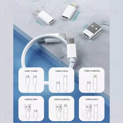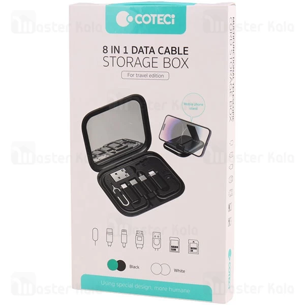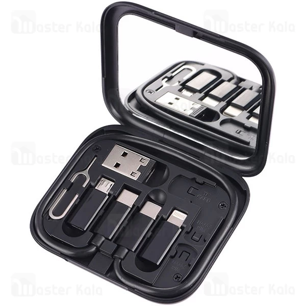 قابل ذکر است تبدیل ها به کانکتور تایپ سی متصل خواهند شد. شما با استفاده از این تبدیل ها و کابل می توانید تمام دستگاه های موجود را به سیستم و یا آداپتور خود متصل کرده و به انتقال اطلاعات و یا شارژ بپردازید. شما می توانید در 6 حالت از این کابل و تبدیلها استفاده کنید. بعلاوه محفظهای برای قرار دادن 2 سیم کارت نانو و کارت حافظه (TF) در داخل این باکس طراحی شده که باعث میشود شما بتوانید سیم کارت و مموری کارت خود را داخل این باکس گذاشته و با خود حمل کنید.