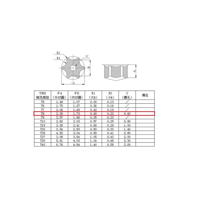 پیچ گوشتی ستاره T8 کاربردی با طول میله 75 میلیمتر