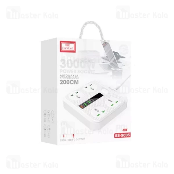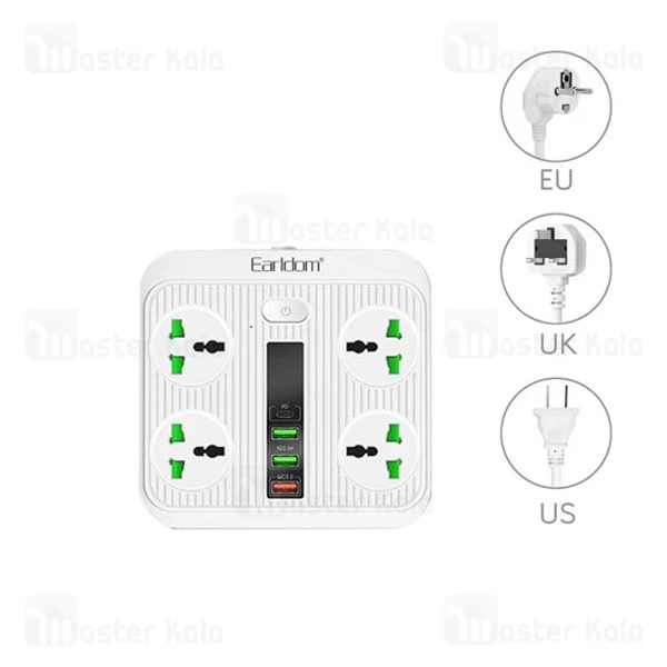چند راهی برق و شارژر ارلدام Earldom Power Socket ES-SC05 دارای 4 پورت